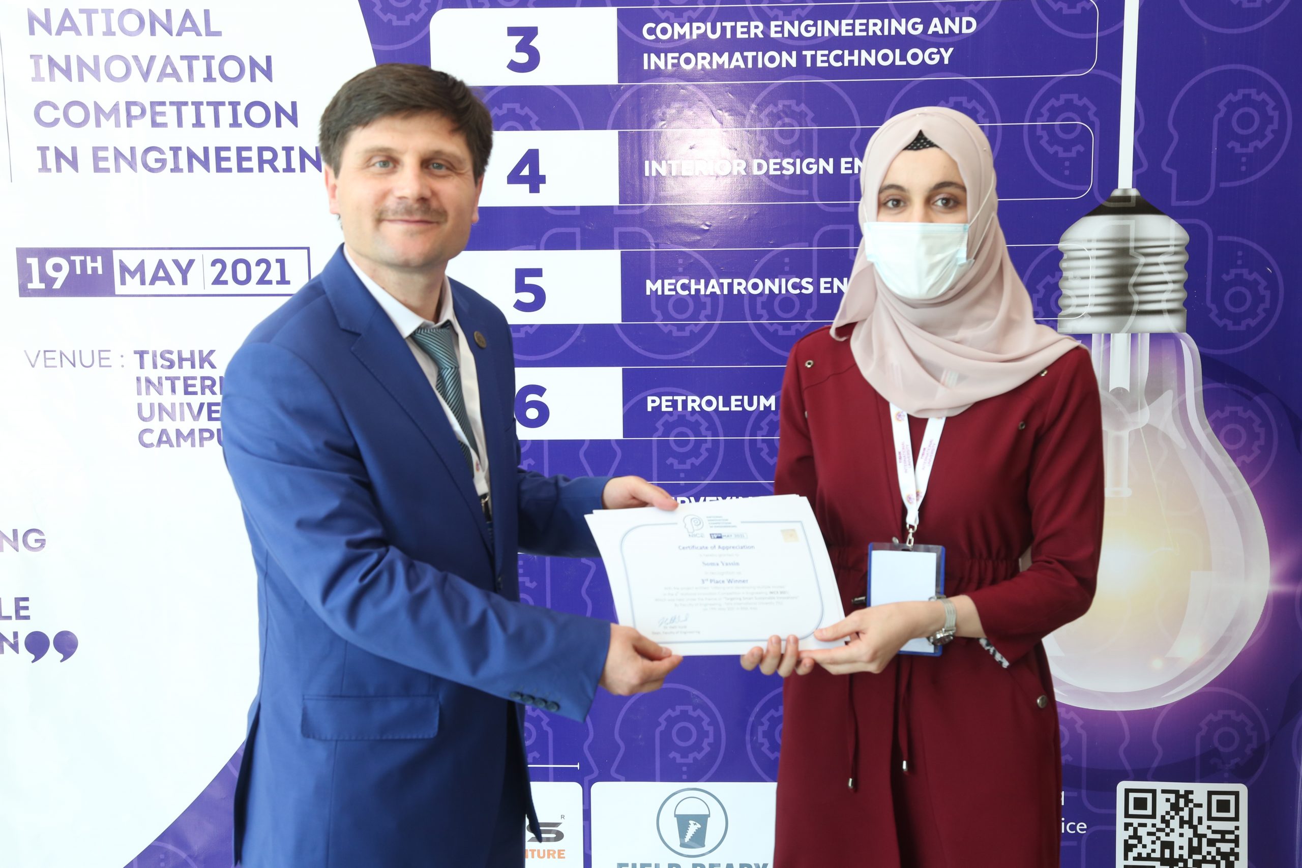 NICE2021 was concluded with the closing ceremony that took place at the main building entrance at 4:00 PM in which Dr. Ezaddin Hasso, Head of the Mechatronics Engineering Department, gave a closing speech where he thanked all the participants for the dedication and effort put into developing their projects, and in turn making the event a great success. The top 3 winners of all seven participating categories and International winners were announced and were awarded gold, silver, and bronze medals, and prize money as well as certificates endowed by the two Vice Presidents of TIU, Dr. Mehmet Ozdemir, and Dr. Wasfi Tahir Saalih.