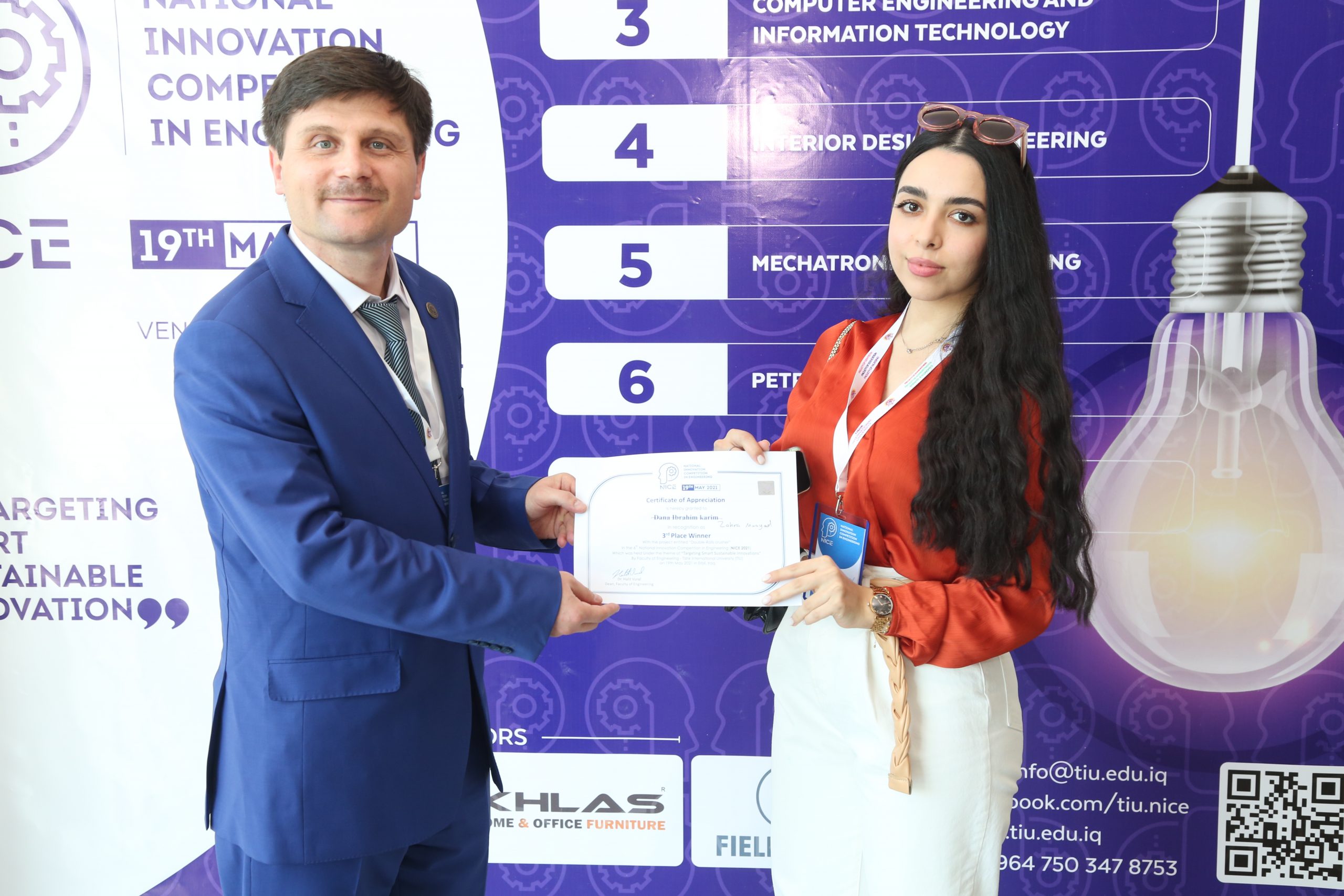 Tishk International University’s 6th National Innovation Competition in Engineering (NICE2021) was held on Wednesday, May 19th, 2021, under the theme of “Targeting Smart Sustainable Innovations.”
